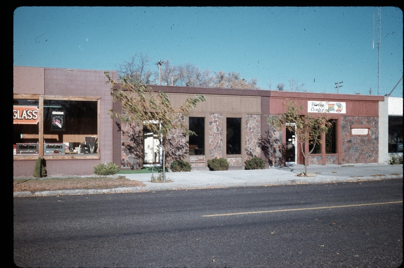 - View of Vision Center (Dr. Jay Hartwell, Optometrist), Harald Gerber office building, and another building selling glass along Main Avenue W