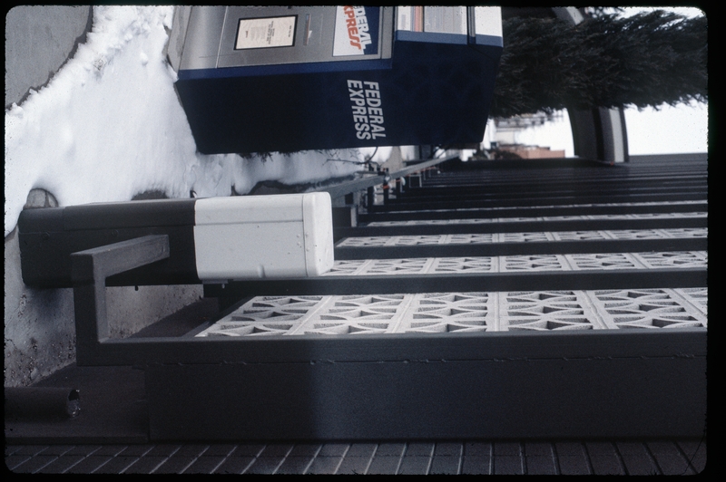 - Close-up view of the rear design of the Twin Falls Bank and Trust building.