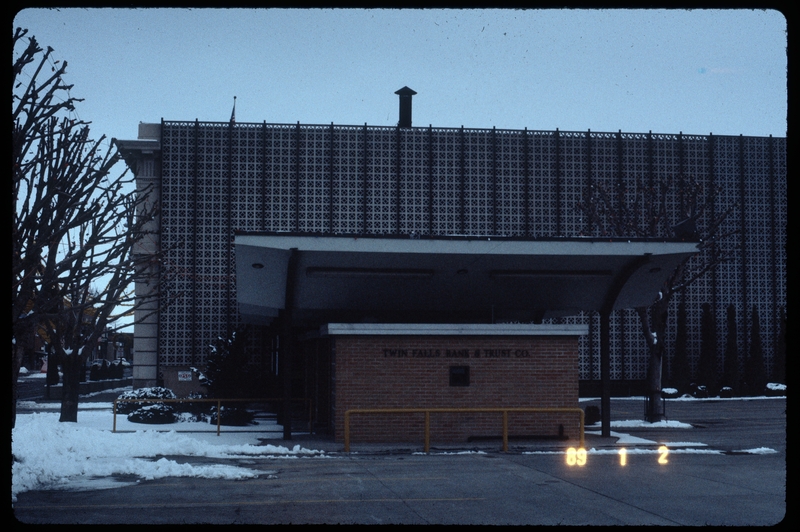 - Rear (alley) view of Twin Falls Bank and Trust building and drive-up area