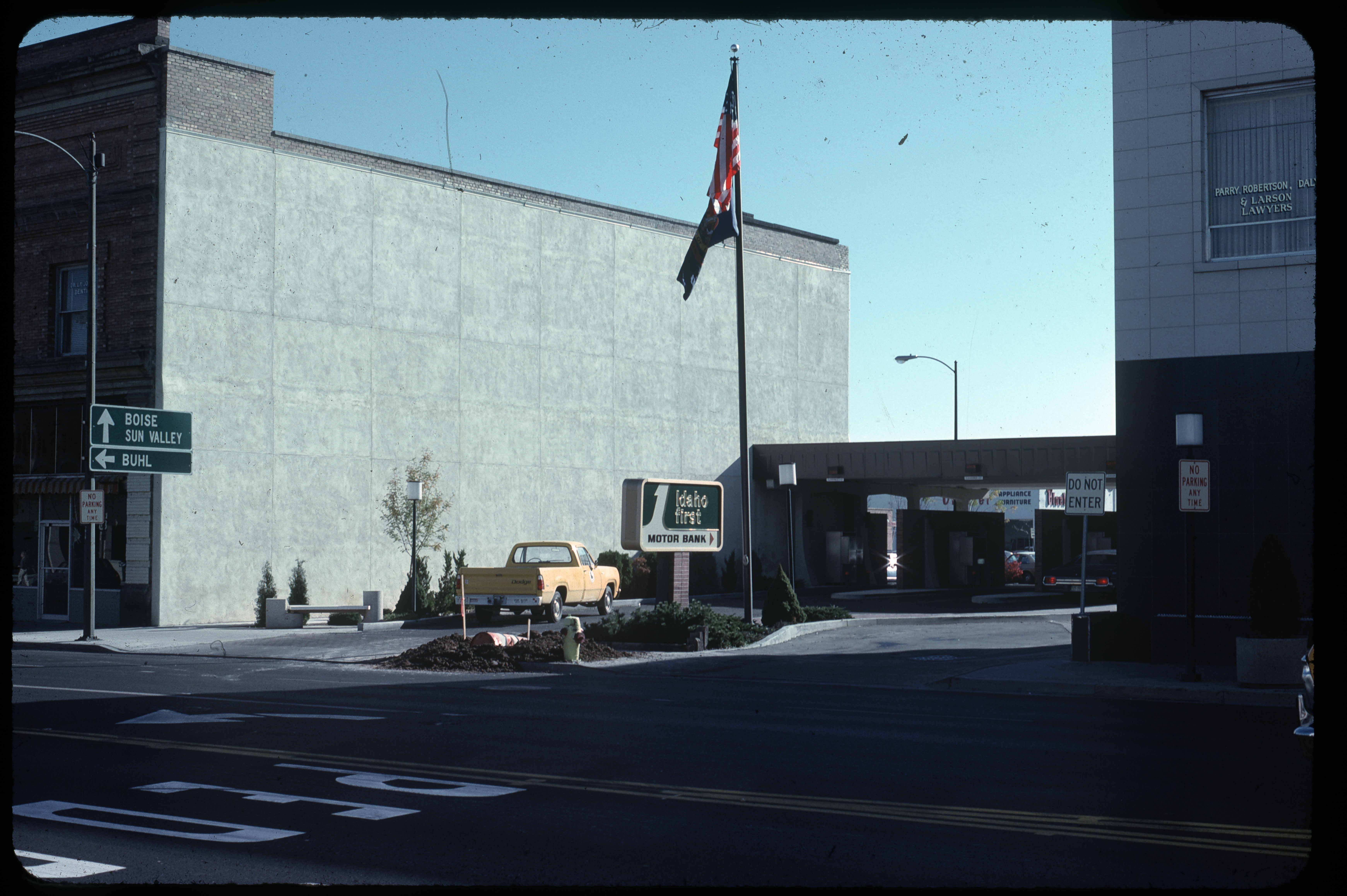 - View of entrance to Idaho First National Bank TV Drive-Thru (Motor Bank) teller lanes