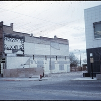- View of side of Burkholder building prior to the construction of the Idaho First National Bank TV Drive-Thru (Motor Bank) teller lanes;