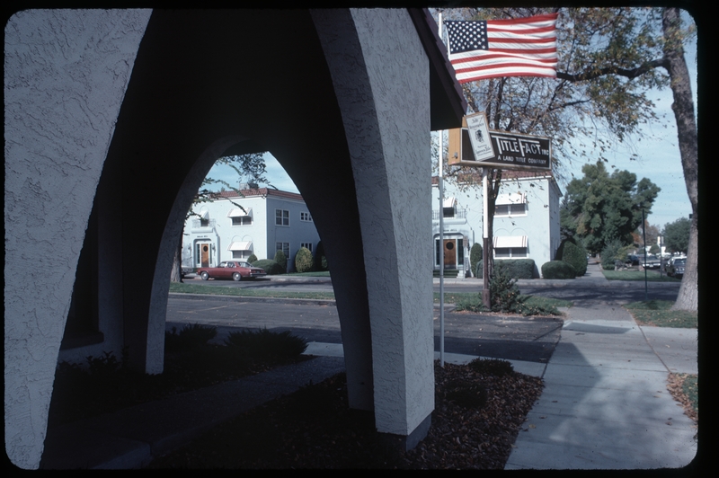 - The Belleville Apartment buildings, as seen through the arch at Titlefact across the Street.