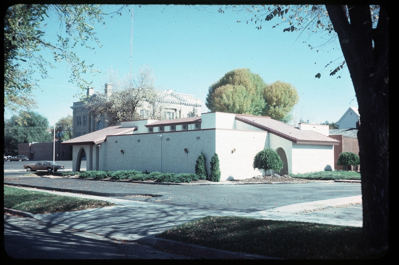 - Side view of the TitleFact building along 2nd Street N (now Gooding Street N). Twin Falls County Court House in the background.