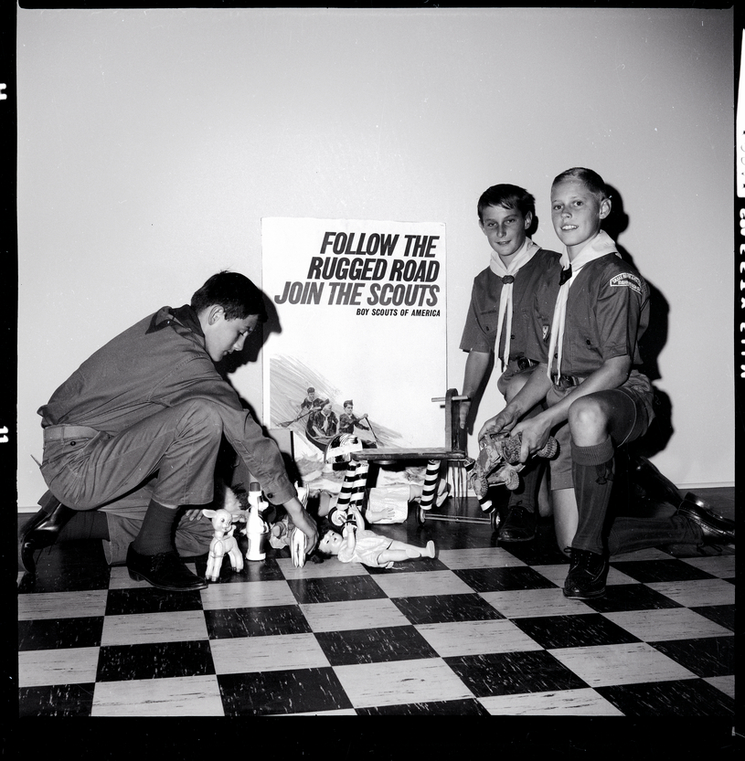 Members of Boy Scout Troop 60 sort toys for the "Toys for Joys" project being undertaken by various scout troops in Twin Falls. The program provides toys for needy children