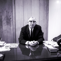- Lyons Smith, general manager of Ida Gem Dairymen, Inc., sits behind a desk. He has served as a representative of the dairy industry in the Magic Valley. He is dressed in a suit and tie. Various papers and office supplies are on the desk.