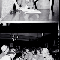 In the top image, checking over the registration list at a Cowbelles organizational meeting are, from left to right, Mrs. Carl G. Anderson, president-elect of the Idaho Cowbelles, Mrs. Robert Stringfellow, treasurer of the Idaho Cowbelles, and Mrs. Roy Mink, president of the