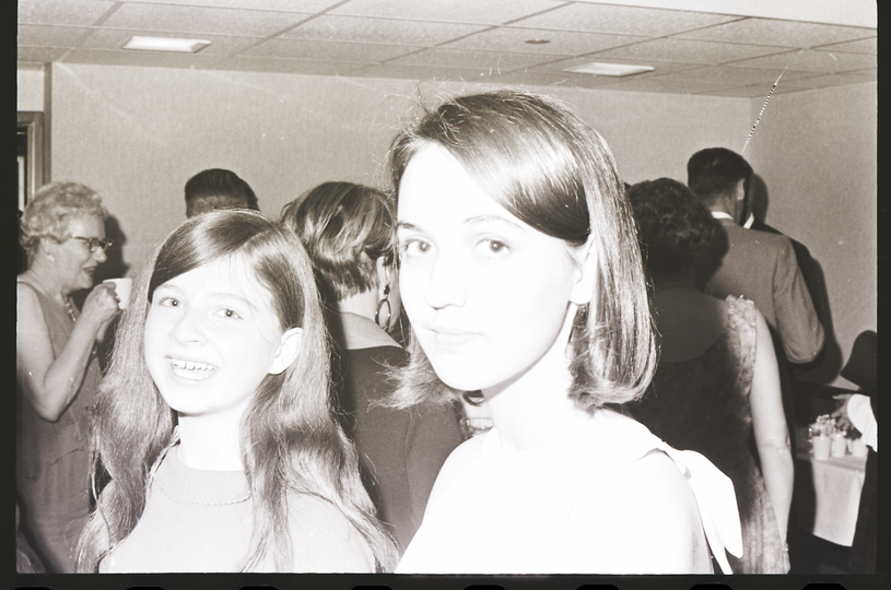 - Two young girls attend the Dilettante's "Sound of Music" opening night post-show reception at the Twin Falls Holiday Inn. Other attendees are gathered in the background, waiting in a line for a refreshment table.