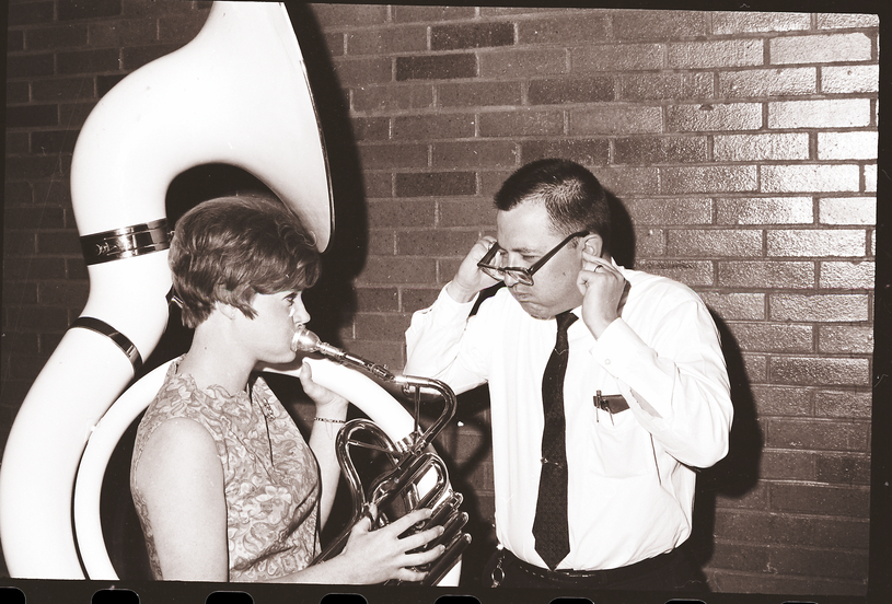 Joan Patterson plays a sousaphone at CSI's Festival of the Arts. CSI music instructor Denis