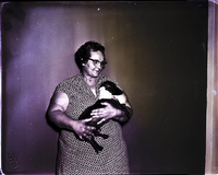 KEL 231 Mrs. Marie Presnell holds her two-year-old dachsund, Eric, who has a brace around his neck. The dog was found with slash wounds on his throat. The cuts, which were inflicted either by a person with a knife or another dog, required thirty-seven stitches to close.